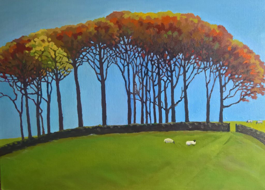 An impressionist view of a favourite place. I especially love this group of trees because they have an architectural feel . Sitting on top of a grassy knoll, they have a view over Menston and Guiseley as well as being on the edge of the Chevin.